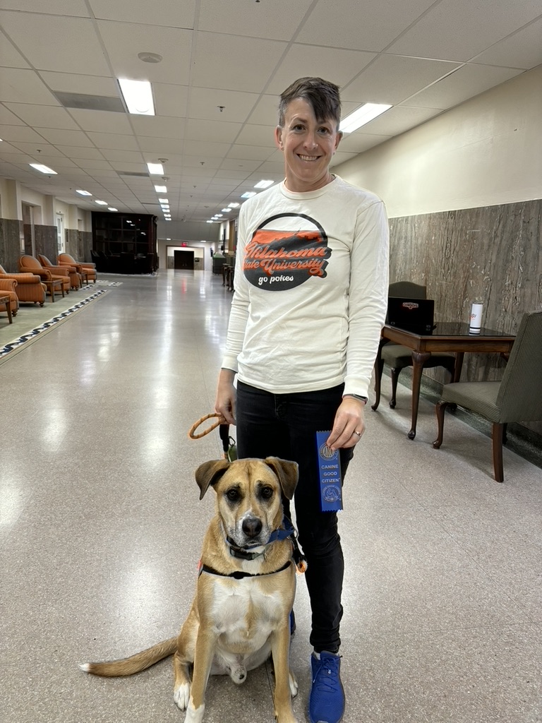 The best doggo Jack is joining Pete’s Pet Posse for Class 11 to be a therapy dog at OSU. Here is a pic of him passing his Canine Good Citizen test with flying colors (https://hr.okstate.edu/pet-therapy/)