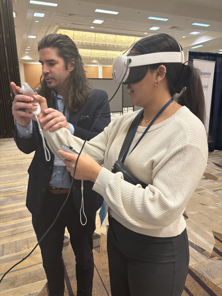 Fabio Machado and I received a tech grant from the College of Arts & Sciences allowing us to get some Syglass (https://www.syglass.io/) systems for the lab and our courses (Mammology and Neuroscience). Left picture is Michael Morehead of Syglass and Gen demoing the system at the Association for Research in Otolaryngology. Right picture is Fabio Machado trying it out in my office for the first time.