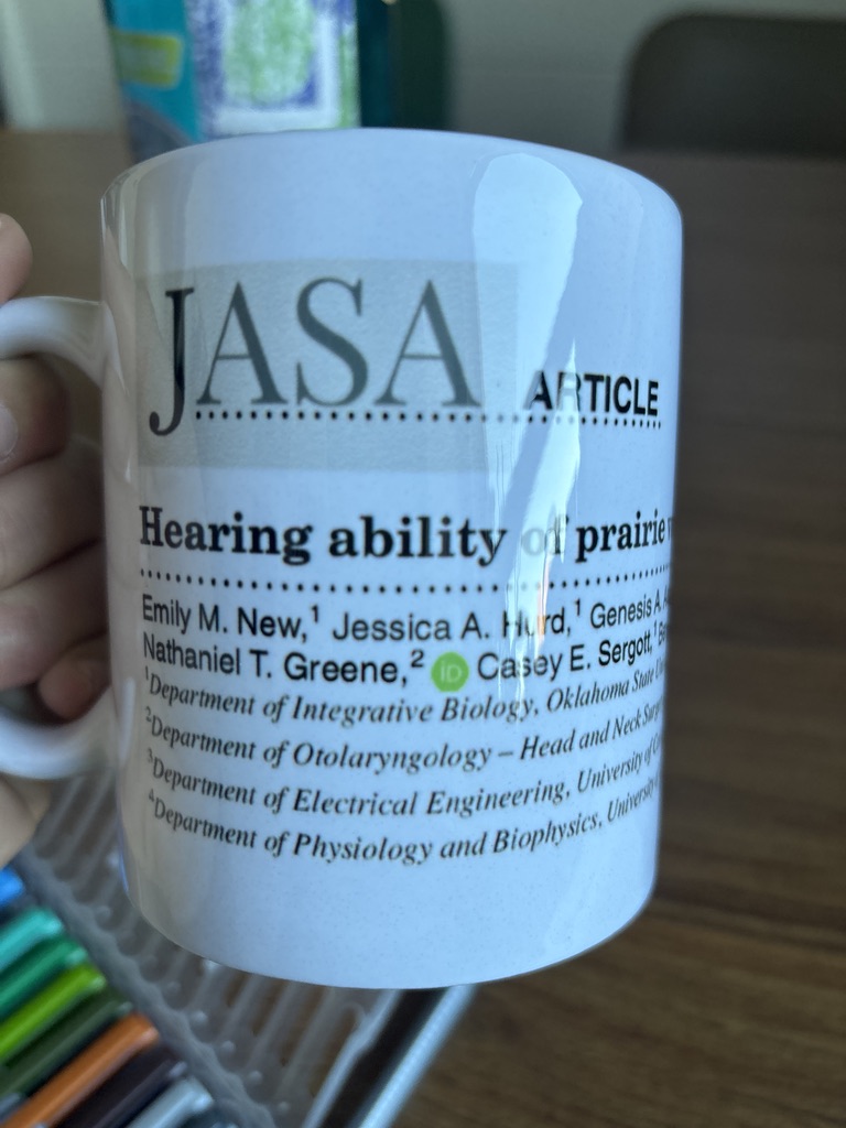 We finally got our first paper on prairie voles out of the lab! Spearheaded in the early days by undergraduate researcher Margaret New (who graduated and is hopefully going to crush PA school in the future). Support from many folks in the lab including Jesse, Gen, Peyton, Cameron, and Casey. Not to leave out folks at CU Anschutz/Denver including Nate Greene, Tim Lei and Ben-zheng Li. Check out the full paper here – https://pubs.aip.org/asa/jasa/article/155/1/555/3061584/Hearing-ability-of-prairie-voles-Microtus