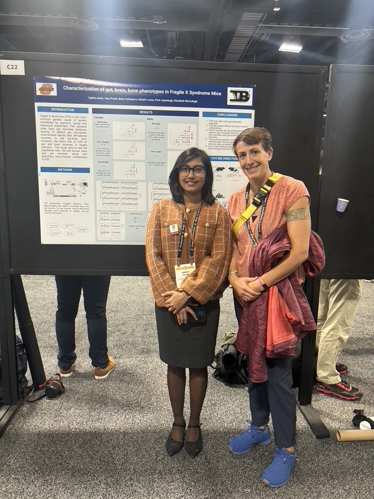 We went to Society for Neuroscience in Washington D.C. where Sabiha (left picture) presented her poster on elemental alterations in Fragile X Syndrome across tissue types. Also got to present our work on myelination at a minisymposium organized by the amazing Ilse Gantois (right picture Francesco Longo, Ilse Gantois, Nisha Raj, me).